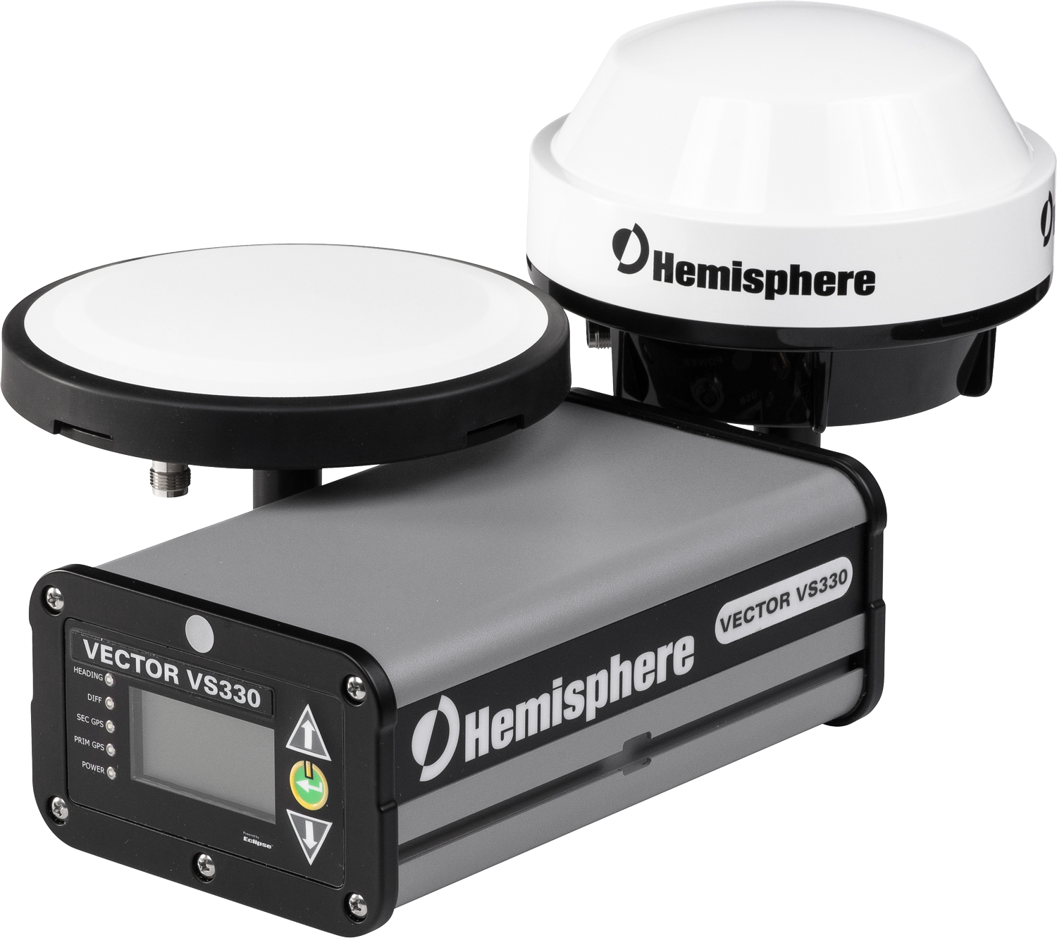 The Vector VS330 receiver, with its display and user interface, can be conveniently installed near the operator. The two antennas are mounted separately and with a user-determined separation to meet the desired heading accuracy. The Vector VS330 uses L-Band DGNSS and SBAS for differential GNSS positioning. Our MFA DGNSS patented technology allows the VS330 to smoothly transition between DGNSS systems.